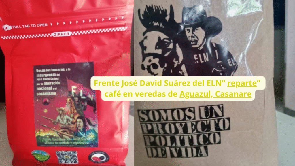El Frente José David Suárez del ELN, con presencia en el occidente de Casanare, “conmemoró” sus 40 años de existencia distribuyendo bolsas de café con su propaganda en varias veredas del municipio de Aguazul durante el fin de semana.
