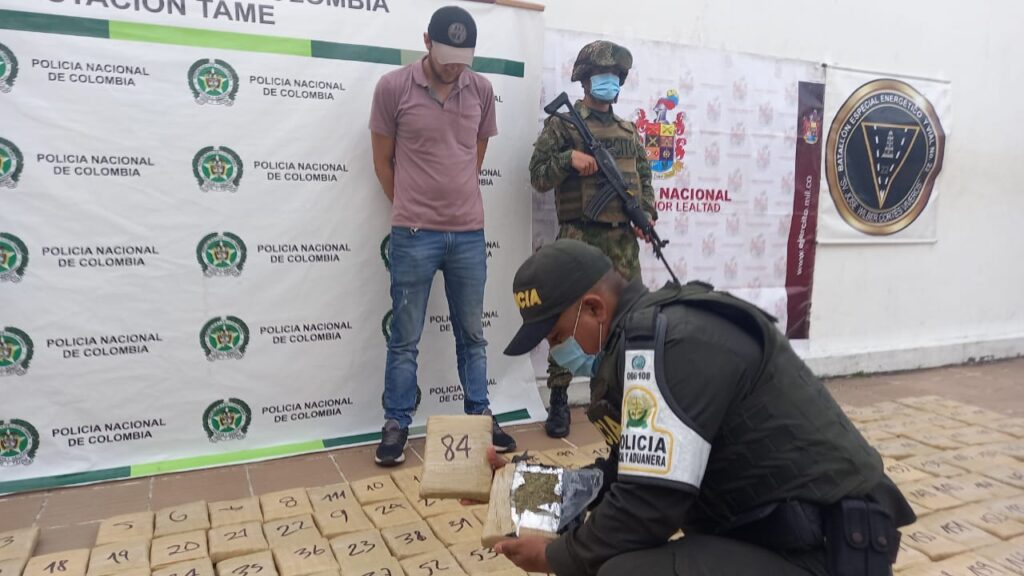 Este resultado se obtiene gracias a las labores de inteligencia que realiza la Fuerza Pública, quienes mediante un puesto de control en la base militar de Naranjitos, municipio de Tame, Arauca, interceptan un vehículo en el que detectan que en su