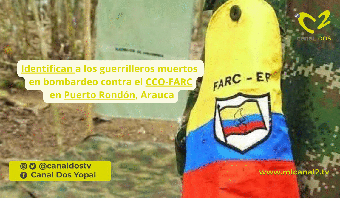 Autoridades confirmaron las identidades de ocho integrantes del Comando Conjunto de Oriente del Estado Mayor Central de las FARC (EMC-FARC) que murieron en el bombardeo realizado el 13 de noviembre en zona rural de Puerto Rondón, Arauca. El operativo fue dirigido contra la subestructura comandada por alias “Antonio Medina”, perteneciente al bloque de Iván Mordisco.