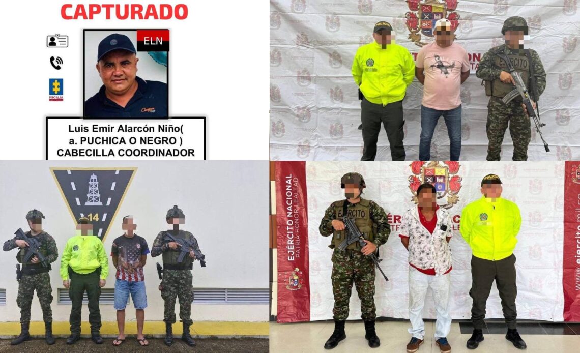 Entre los capturados se encuentra alias ‘Puchica’ o ‘Negro’, identificado por las autoridades como el cabecilla de la organización. De acuerdo con información de inteligencia militar, esta banda habría financiado acciones armadas contra la Fuerza Pública mediante la comercialización ilegal de combustibles sustraídos del sistema nacional de transporte de hidrocarburos.