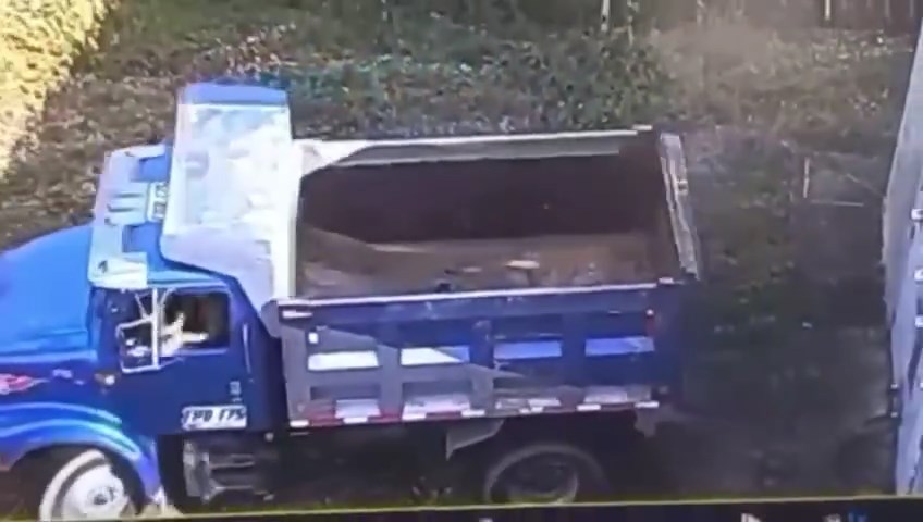 Esta volqueta quedó registrada en un video de seguridad, y estaba siendo usada para transportar material explosivo y afectar una válvula del oleoducto Bicentenario en Arauca.