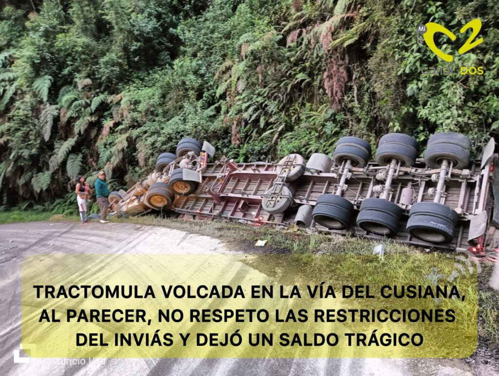 TRACTOMULA VOLCADA EN LA VÍA DEL CUSIANA,