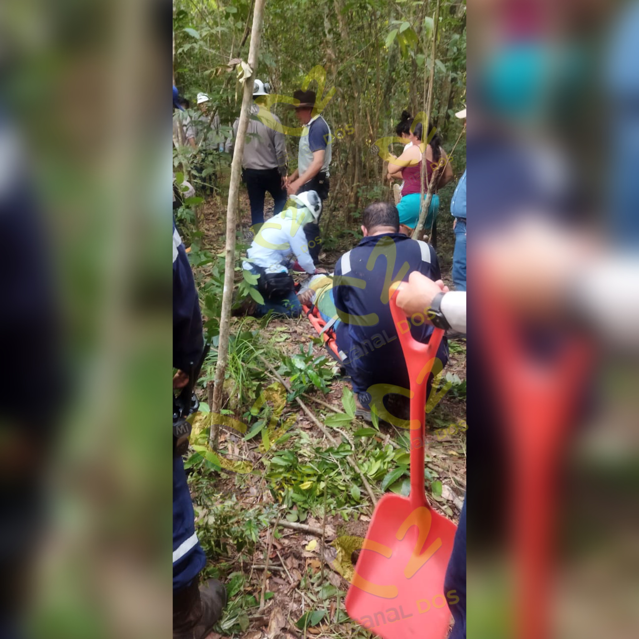 Se procedió a arrancar la puerta para poder evacuar al capitán a doña Emma y a un perrito. En camilla se trasladaron los heridos hasta la casa más cercana, se procedió al procedimiento de reanimación a la señora, por parte de la enfermera de la compañía y se le presto los primeros auxilios al capitán canalizando y curando las heridas, procedimiento que se prolongó hasta que llegó el helicóptero de la Fuerza Aérea cerca de las 8 de la noche.