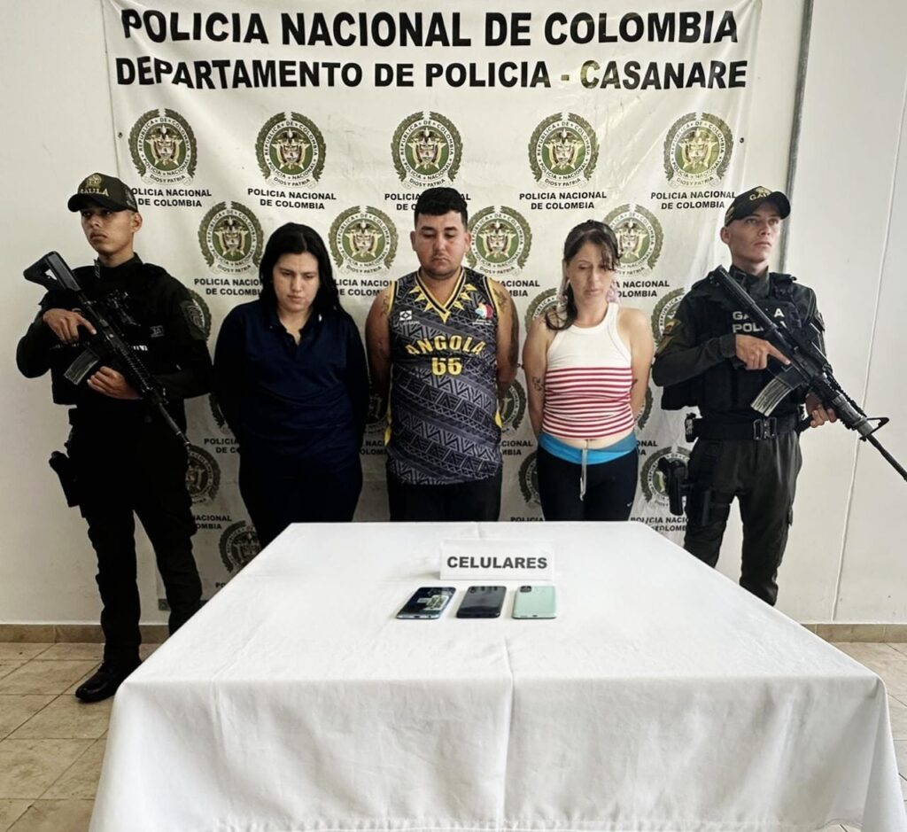 La Policía Nacional en Casanare, mediante trabajo articulado entre Seccional de inteligencia policial, GAULA Policía y en coordinación con la Fiscalía 5 Seccional, se logró en Villanueva la captura por orden judicial de alias “Domi”, alias “Karen” y alias “Yeimi”, por los delitos de concierto para delinquir y extorsión agravada.