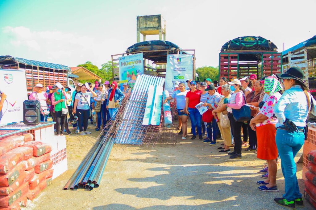 Con materiales como cemento, mallas, bloques, tubos, tejas y puertas, 80 de las 120 beneficiarias recibieron a través de la secretaría de Desarrollo Económico y Ambiental, elementos para la construcción de sus galpones.
