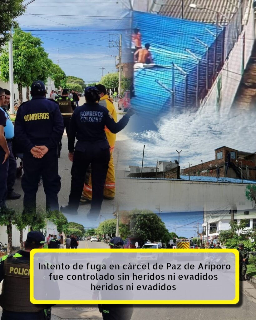 Un intento de fuga y amotinamiento en el centro penitenciario de Paz de Ariporo fue controlado rápidamente por el personal del Inpec en la mañana del lunes 15 de septiembre, sin que se reportaran fugas ni lesionados, informó el comandante del Departamento de Policía Casanare, coronel Pablo Galindo Velandia.