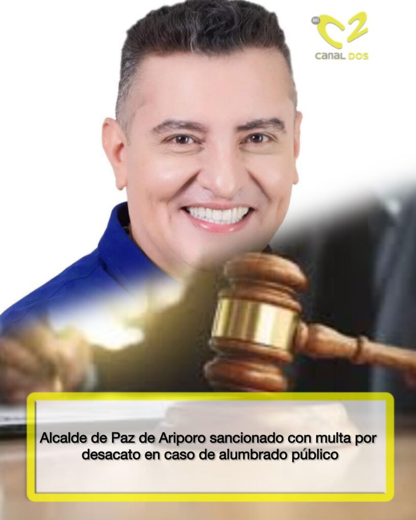 El Juzgado Primero Administrativo de Yopal impuso una sanción al alcalde de Paz de Ariporo, Jorge Camilo Abril Tarache, consistente en el pago de 10 salarios mínimos legales vigentes, tras declararlo en desacato a órdenes judiciales relacionadas con el manejo del impuesto al servicio de alumbrado público.
