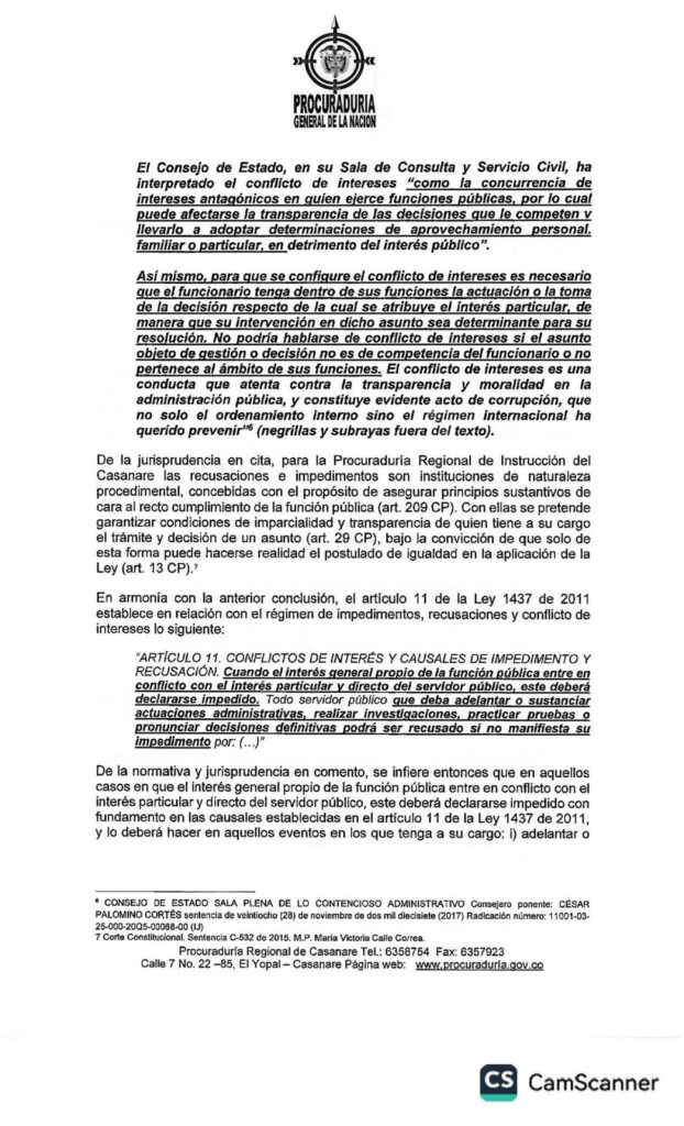 El fallo de la Procuraduría Regional de Casanare concluye lo siguiente: