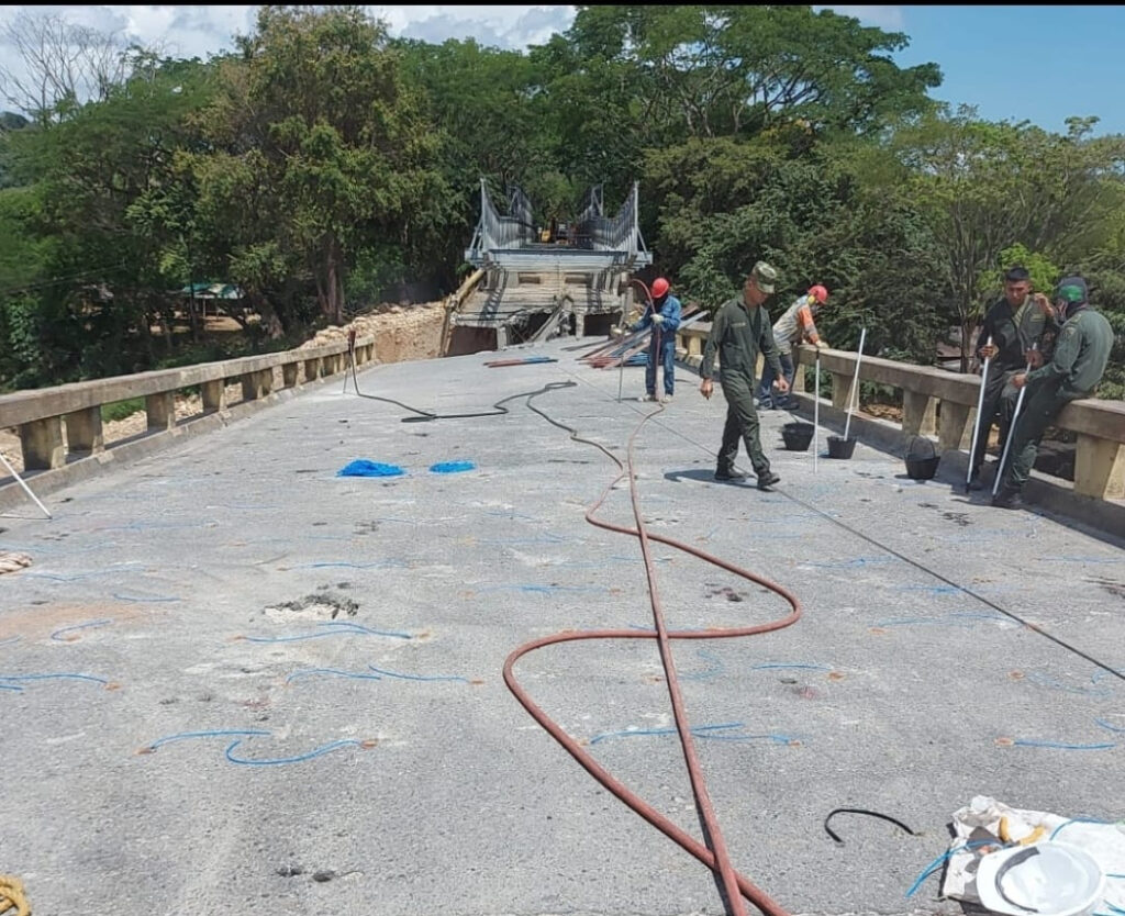 En este momento se adelanta instalación de explosivos sobre el tablero de la luz No.04 del puente Eduardo Román Bazurto sobre el río Ariporo en el municipio de Paz de Ariporo, Casanare.