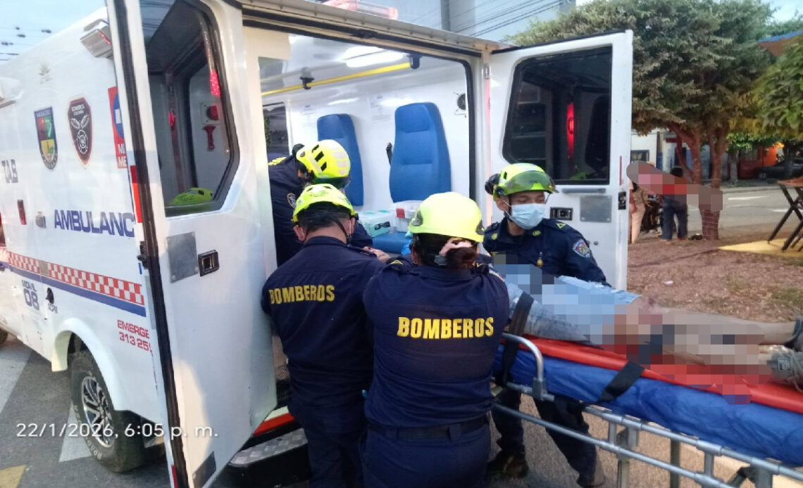El paciente, un hombre de 60 años, recibió atención inicial en el lugar y fue remitido en ambulancia al centro asistencial para su evaluación médica definitiva.