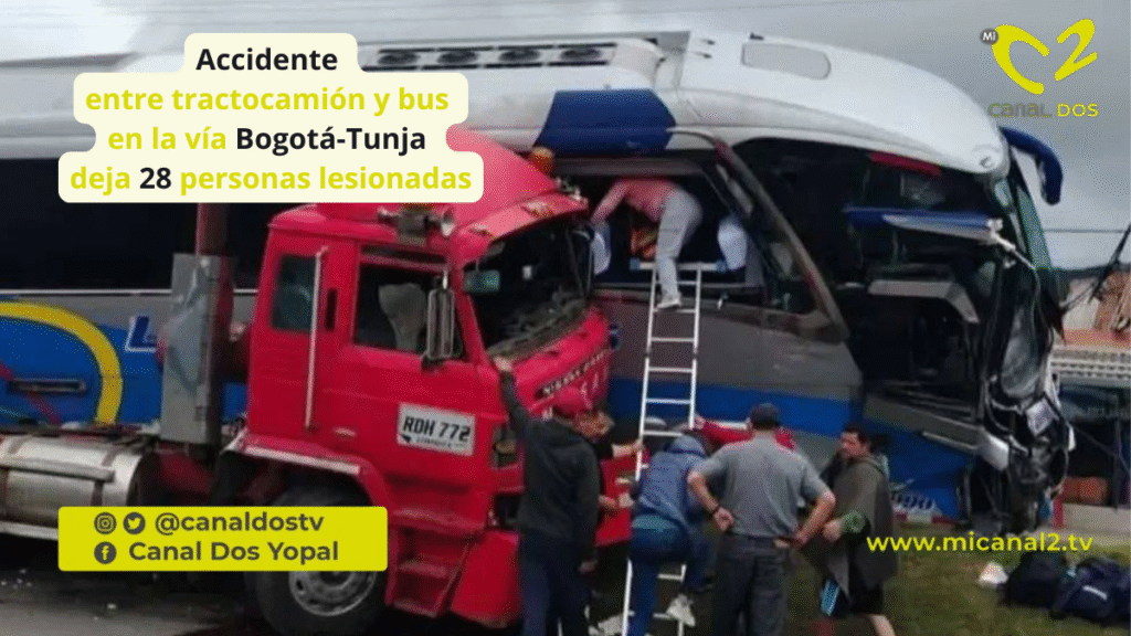 Con heridas leves resultó la mayoría de los 28 pasajeros del bus de Los Libertadores que cubría la ruta Bogotá – Tunja – Duitama- Sogamoso, luego de chocar aparatosamente con un tracto camión.