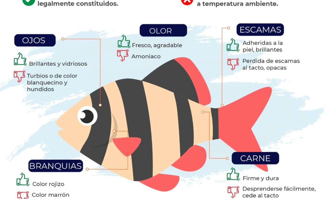 6. Su olor debe ser fresco, sin olor a amoníaco y tener buena textura. El pescado fresco huele poco, un olor fuerte es signo de que el pescado no está fresco.