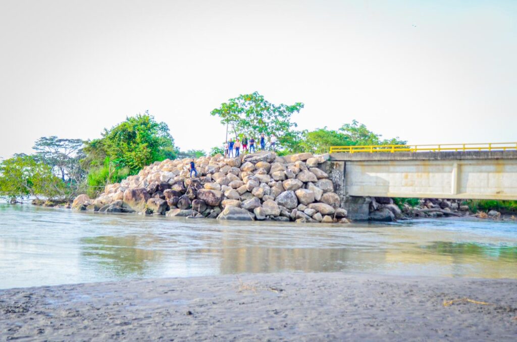 A través de la Dirección de Gestión del Riesgo de Desastres, el ingeniero Salomón Sanabria realizó la rehabilitación y fortalecimiento a enrocado en el estribo derecho parta baja del puente sobre el río Cravo Sur, que comunica a unas 300 familias de las veredas La Manga y Rincón de La Manga.