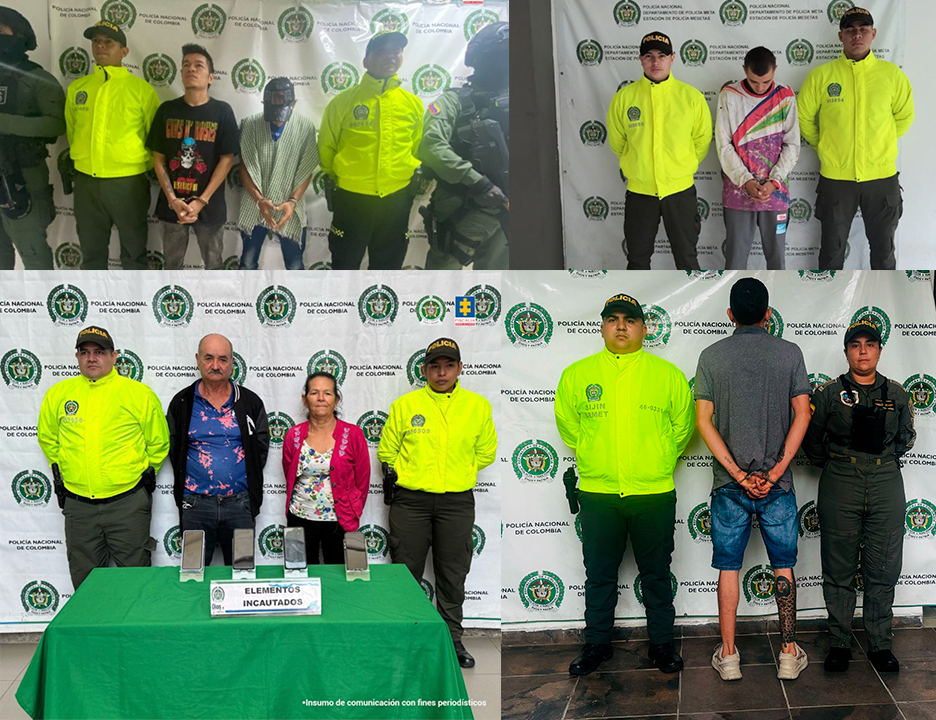 Por solicitud de la Fiscalía General de la Nación, un juez de control de garantías impuso medida de aseguramiento en establecimiento carcelario a una mujer y cinco hombres, presuntos responsables de apoyar el actuar ilegal del bloque móvil Martín Villa de las disidencias de las Farc, con injerencia delictiva en Mesetas, Uribe y Lejanías (Meta). Un fiscal de la Dirección Especializada Contra las Organizaciones Criminales les imputó los delitos de concierto para delinquir agravado con fines de homicidio y desplazamiento forzado; y fabricación, tráfico y porte de armas, municiones de uso restringido, de uso privativo de las Fuerzas Armadas o explosivos. Los cargos no fueron aceptados por los procesados. Durante el desarrollo de diligencias de allanamiento y registro, realizadas por la Policía Nacional, en Bogotá, Villavicencio, Granada y Mesetas (Meta), fueron capturados Martha Lucía Martínez; Fabián Andrés López Martínez, alias Pitucho; Juan Andrés Sánchez Carvajal; Luis Fernando Rodríguez Herrera, alias Perra Flaca; Eduard Stiven Marín Sánchez alias España; y José Noel López Betancourt alias Pinocho. El material de prueba da cuenta de que estas personas, al parecer, pretendían expandir el control territorial hacia áreas estratégicas de Meta, Caquetá y Guaviare, desde septiembre de 2024. De acuerdo con la investigación, estas personas, al parecer, ejercían diferentes roles. Martha Lucía sería la encargada de resguardar a integrantes del grupo armado ilegal provenientes de Cauca y adelantar labores de inteligencia para informar sobre la presencia de las autoridades. Por su parte, ‘Pinocho’, al parecer, ingresaba suministros y armamento para la estructura y señalaba a los colaboradores de grupos rivales, para que fueran asesinados. ‘Pitucho’ estaría relacionado con las acciones coercitivas contra desertores. El resto de capturados, presuntamente, se encargaban de la distribución y suministro de víveres, dinero, armas, uniformes y equipos tecnológicos.
