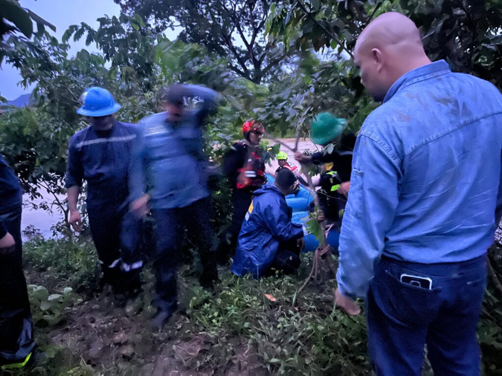 El reporte inicial alertaba sobre una persona en riesgo. Al llegar al sitio, las unidades de emergencia identificaron a tres personas afectadas y una retroexcavadora sumergida en el cauce.
