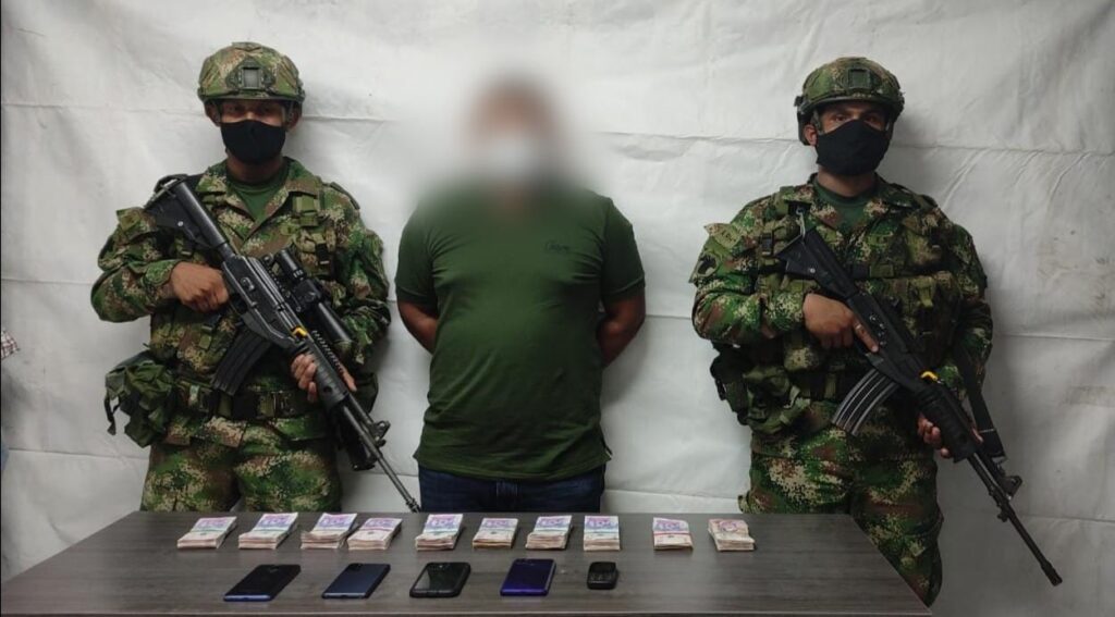 Este sujeto es requerido por la justicia mediante orden de captura vigente, por los delitos de concierto para delinquir agravado y tráfico, fabricación y/o porte de armas de fuego. En el momento de su captura, se le incautaron cinco celulares, un vehículo marca Renault Duster y más de $46 millones pesos. El capturado y los elementos incautados fueron puestos a disposición de la autoridad competente.