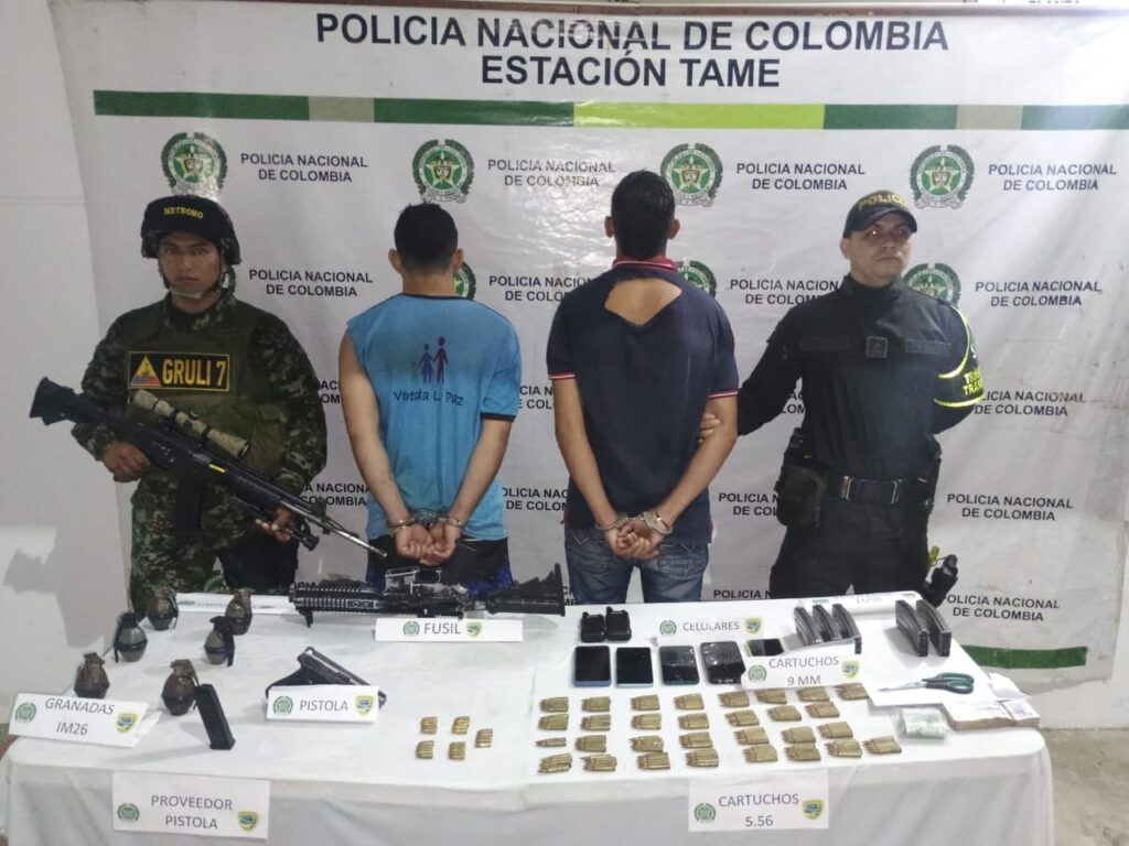 El Ejército Nacional, en el marco del Plan de Operaciones Ayacucho, adelantando tareas de estabilidad sobre las vías del departamento de Arauca, tropas de la Fuerza de Tarea Conjunta Quirón, la Décima Octava Brigada, con el Grupo Liviano de Caballería N.° 7 Meteoro, y en trabajo coordinado con la Policía Nacional, logran la captura de cuatro sujetos que pretendían huir de un puesto de control; al parecer serían integrantes de la Estructura 10 Guadalupe Salcedo, del Comando Conjunto de Oriente Martín Villa del GAO-r.