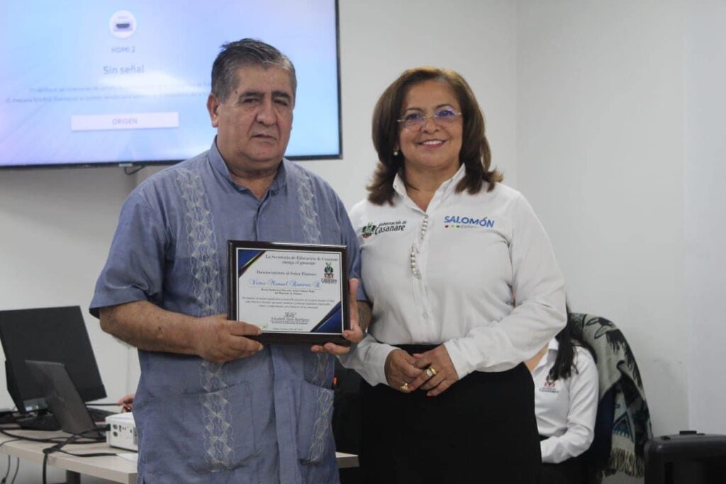 La Secretaría de Educación Departamental, con el liderazgo de la Licenciada Elisabeth Ojeda, rindió un merecido reconocimiento a dos destacados directivos docentes por su invaluable contribución al desarrollo educativo de Casanare, mediante el «Programa de Bienestar Laboral, Estímulos e Incentivos».