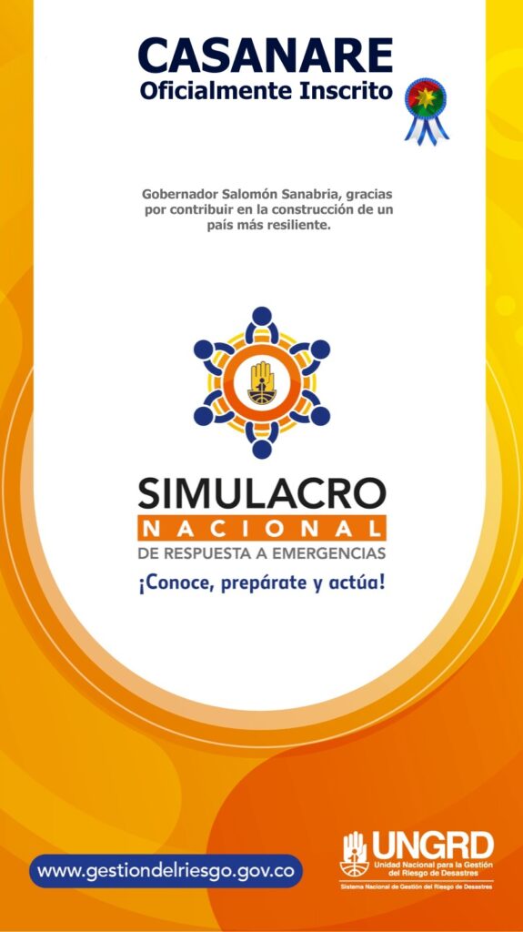 El gobernador Salomón Sanabria inscribió a Casanare a este evento pedagógico donde se espera la participación de planteles educativos, hospitales, organismos de socorro, fuerzas militares, empresas tanto públicas como privadas y comunidad en general.