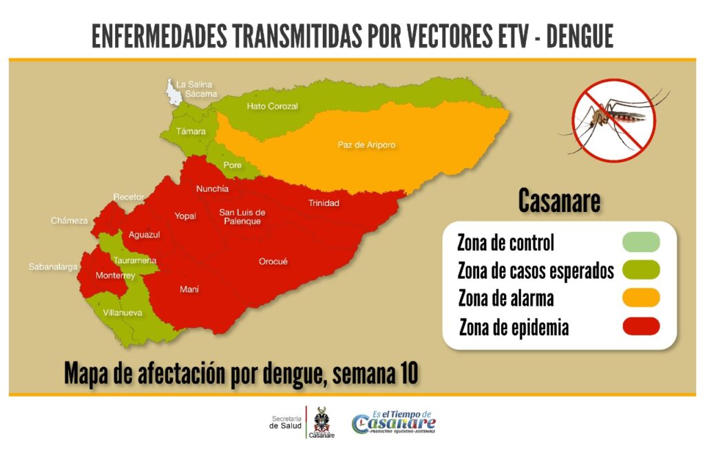 Teniendo en cuenta que la cifra es mayor respecto al 2021, la Secretaría de Salud de Casanare aseguró que la población debe continuar extremando las medidas de prevención y no bajar la guardia ya que “el departamento es endémico para esta enfermedad y que varios municipios se encuentran en alerta por brote de dengue”, indicó Constanza Vega, secretaria de Salud Departamental.