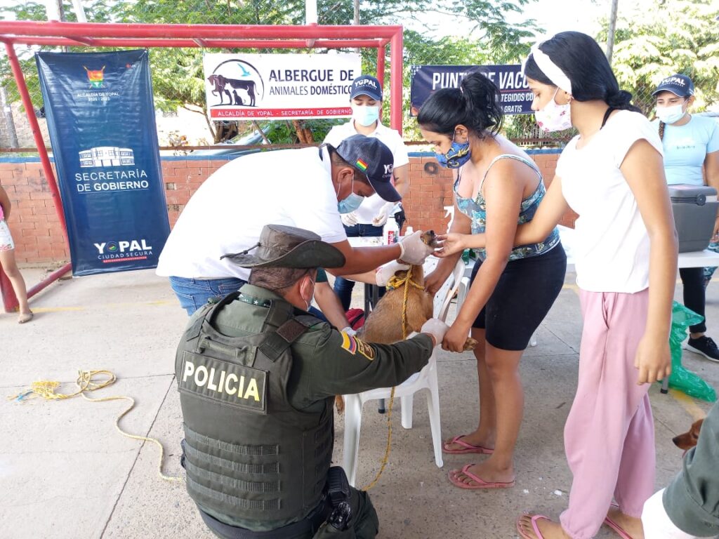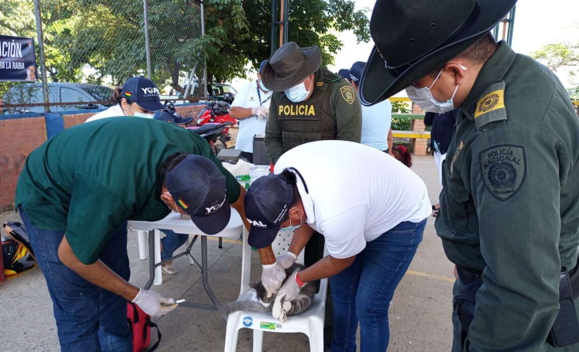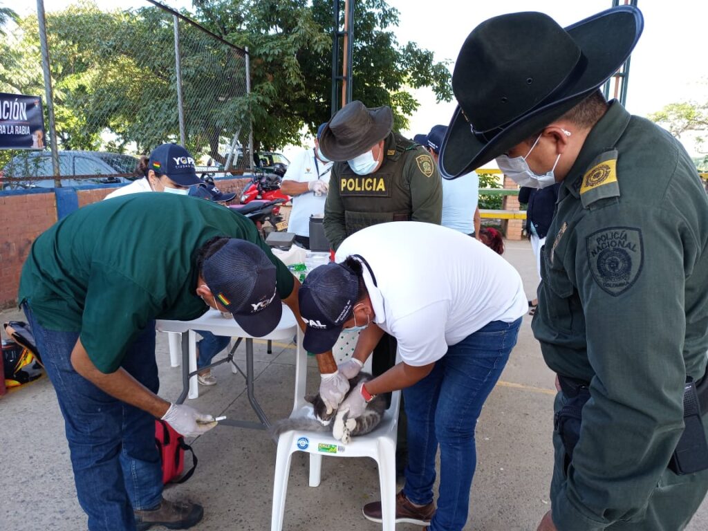 Las Secretarías de Gobierno y Salud en compañía de Policía Nacional, atendieron a 57mascotas entre gatos y perros.
