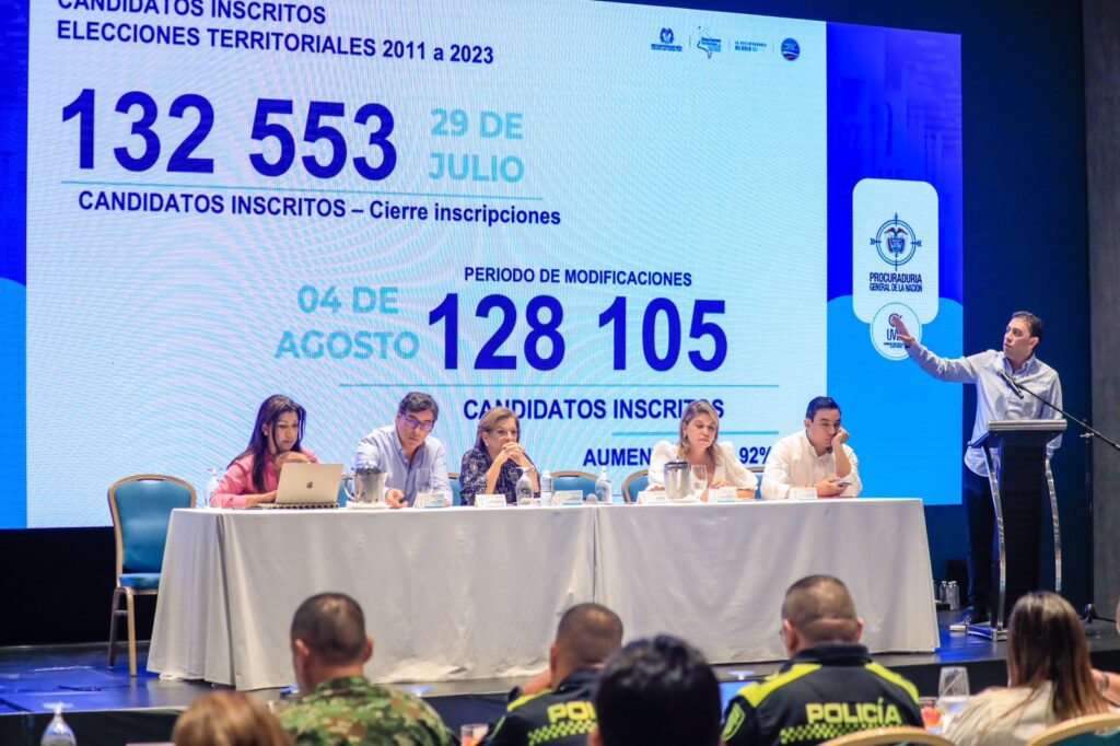 En el marco del foro ‘Avances del proceso electoral’ en Santa Marta, el registrador nacional del Estado Civil, Alexander Vega Rocha, anunció que, luego del periodo de modificación de candidatos y listas por renuncia o no aceptación, se registra un total de 128 105 candidatos inscritos para participar en las elecciones territoriales 2023.