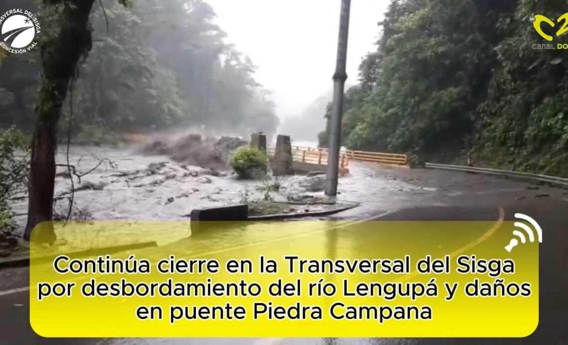 Se mantiene el cierre preventivo en el tramo vial que comunica los municipios de Santa María y San Luis de Gaceno, en el departamento de Boyacá, debido a las afectaciones provocadas por el desbordamiento del río Lengupá, que comprometió la estabilidad del puente Piedra Campana.