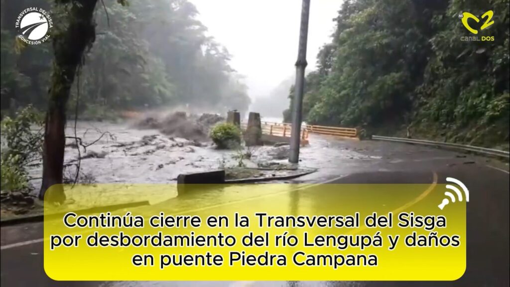 Se mantiene el cierre preventivo en el tramo vial que comunica los municipios de Santa María y San Luis de Gaceno, en el departamento de Boyacá, debido a las afectaciones provocadas por el desbordamiento del río Lengupá, que comprometió la estabilidad del puente Piedra Campana.