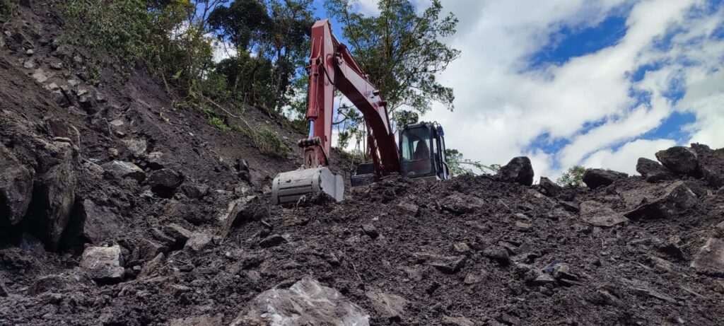 Con recursos propios de la Gobernación, que incluyen un bulldozer, una excavadora, una retroexcavadora, dos volquetas, una motoniveladora, un vibrocompactador y el equipo humano más eficiente y comprometido, se llevan a cabo las obras que lograrán recuperar la vía de acceso para los más de 1.600 habitantes del municipio.