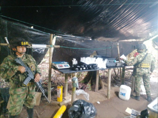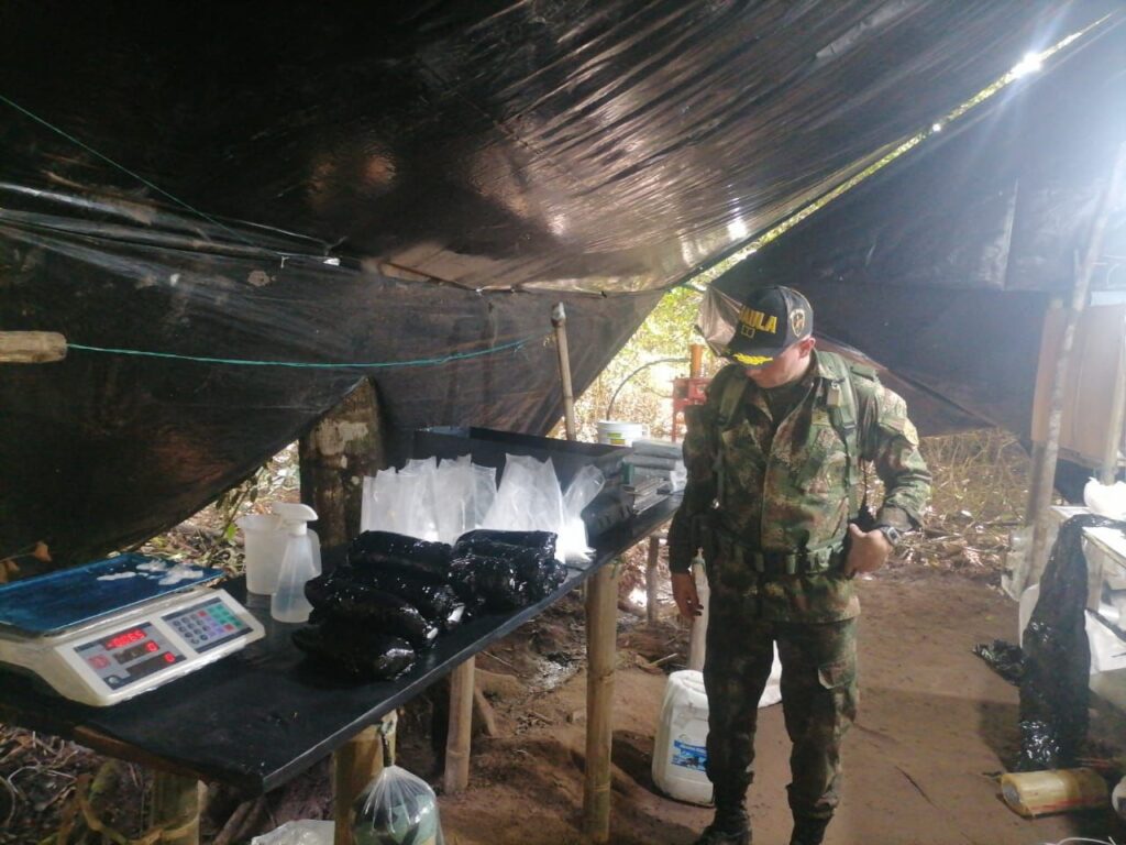 Un laboratorio de producción de clorhidrato de cocaína fue ubicado y destruido por el Ejército Nacional en área rural del municipio de Maní, Casanare. Se incautaron más de 40 kilos de este estupefaciente.