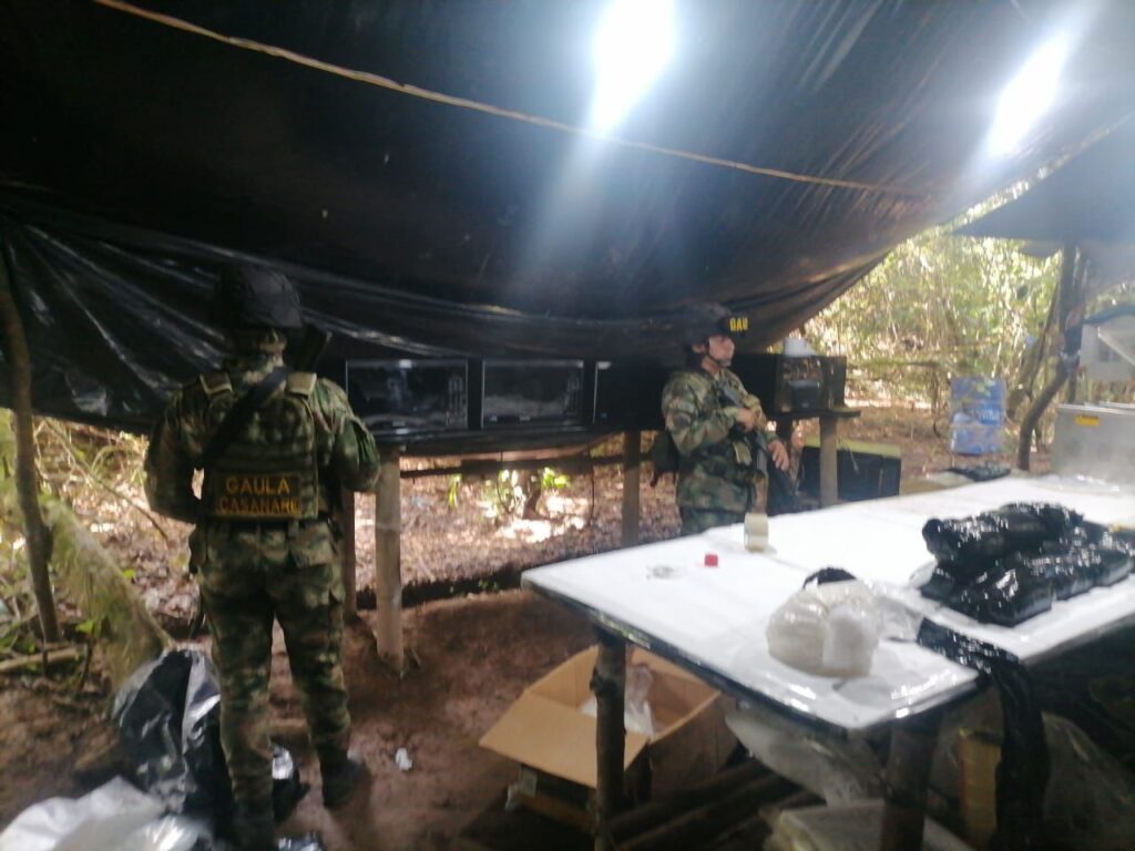En desarrollo de operaciones conjuntas, coordinadas e interinstitucionales del Ejército Nacional con la Fuerza Aeroespacial Colombiana, la DIJIN de la Policía Nacional y la Fiscalía General de la Nación, gracias a informaciones de inteligencia, tropas del Gaula Militar del Casanare lograron en las últimas horas la destrucción de un laboratorio para el procesamiento de clorhidrato de cocaína, en área rural de los municipios de Maní y Orocué, Casanare.