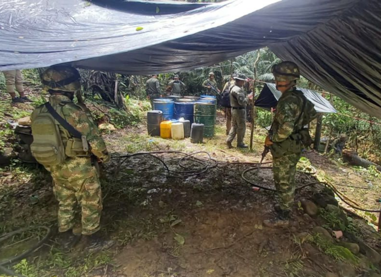 En desarrollo de operaciones militares y gracias a informaciones de inteligencia militar, el Ejército Nacional, en coordinación con la Policía Nacional, llegó hasta un área boscosa de la vereda Batallera, del municipio de Tauramena, en el Casanare, donde se desmanteló un laboratorio para el procesamiento de clorhidrato de cocaína, que sería del grupo armado organizado Clan del Golfo.