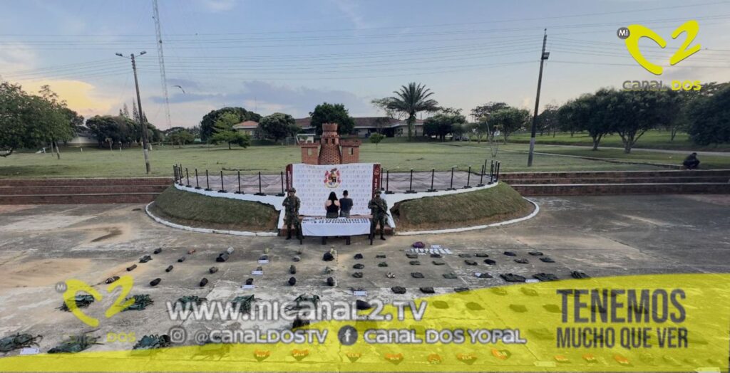 Así mismo, se logra la incautación de más de 700 municiones calibre 7.62 para fusil AK 47, 3 proveedores para fusil AK47, 3 granadas calibre 40 mm, material explosivo y 5 artefactos tipo mina antipersonal, además de material de intendencia como equipos de campaña, un camuflado tipo camaleón, uniformes tipo policía, buzos, sudaderas, hamacas, toldillos y ponchos, gorras, brazaletes y parches alusivos al ELN.