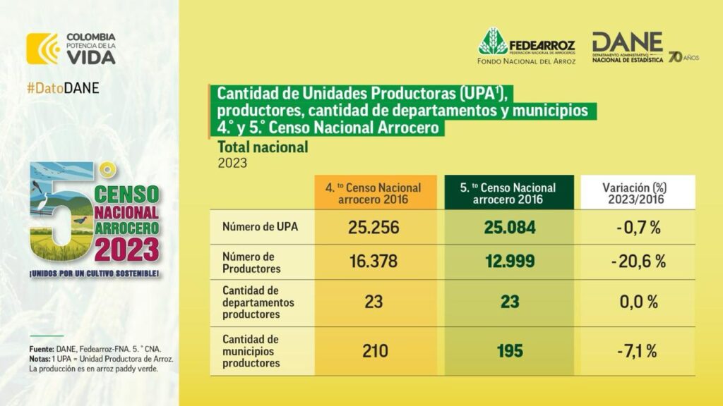 Fuente: DANE, Fedearroz-FNA. 5.° CNA.