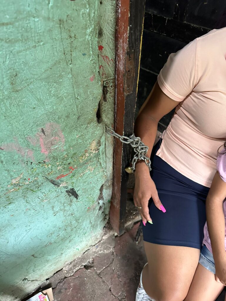 Ni la medida de hecho que hizo Dina Yined Guayabo Granados , quien se encadenó a una de las puertas de la casa. Allí permaneció hasta el epílogo de esta historia, viendo con llanto en los ojos, como los sacaban del lugar que por más de 20 años fue su hogar.