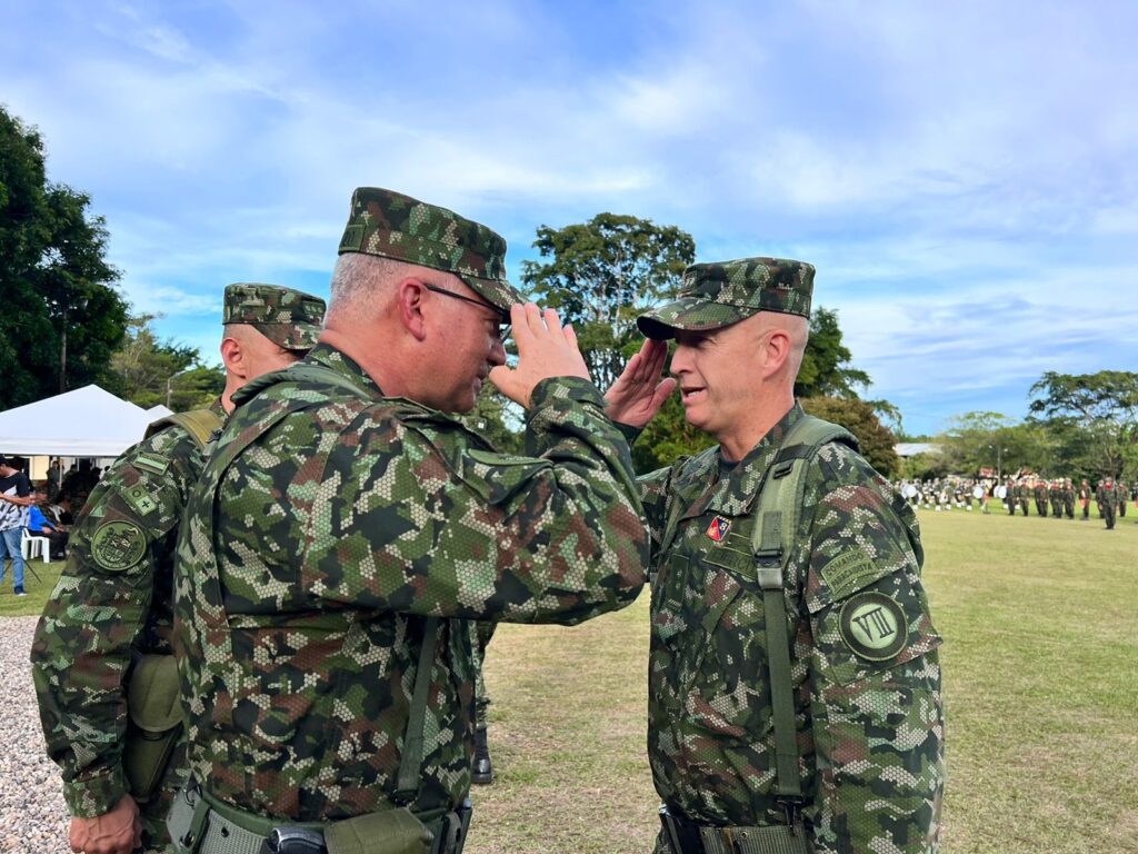 En ceremonia militar presidida por el señor General Luis Emilio Cardozo Santamaría, comandante del Ejército Nacional, se llevó a cabo en el Cantón Militar Manare en Yopal, Casanare la transmisión de mando de la Octava División. El señor Brigadier General Walther Adrián Giraldo Jiménez entrega al señor Brigadier General Jaime Alonso Galindo, nuevo comandante de esta unidad militar.
