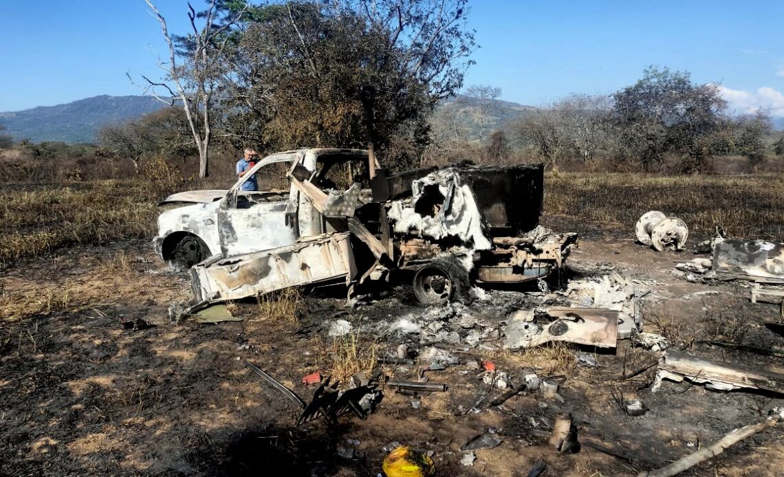 Uno de los vehículos de rescate fue alcanzado por la llamas y a pesar de los esfuerzos de los bomberos, no fue posible evitar que se convirtiera en un montón de chatarra y cenizas en cuestión de minutos.