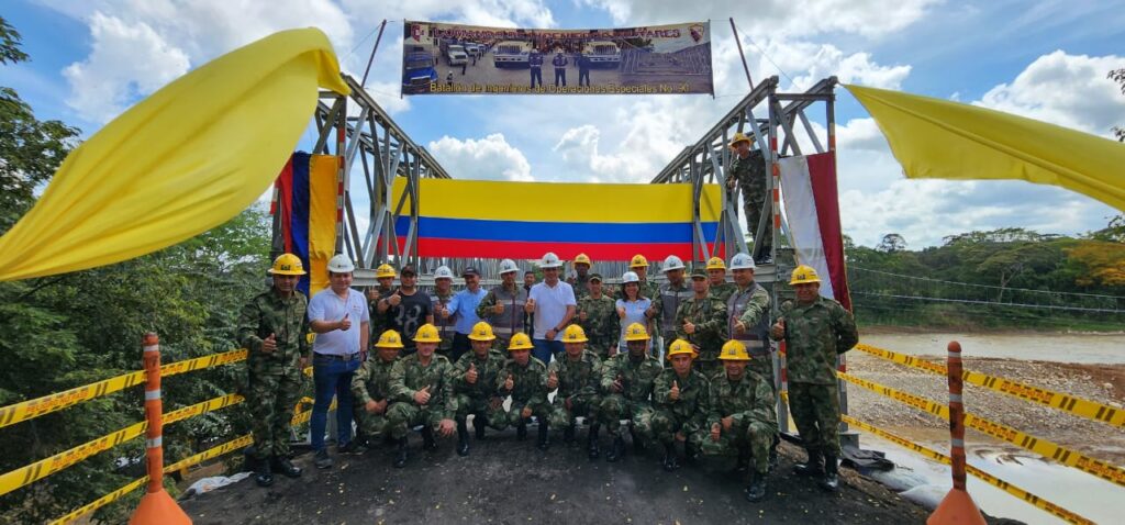 Nacional y con apoyo de Invías en tan solo 25 días entregaron el nuevo puente militar para restablecer el tránsito vehicular.