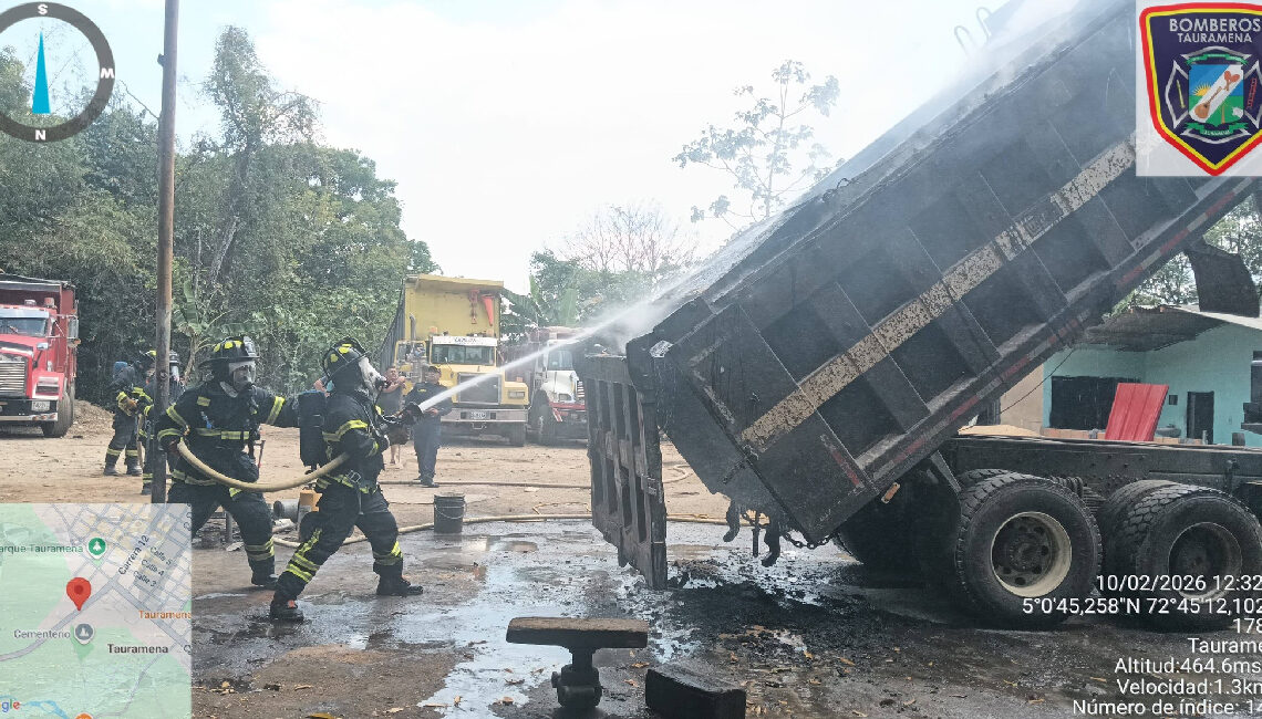 La rápida intervención de los organismos de socorro evitó una emergencia mayor en el sector de la estación de servicio El Diamante, en Tauramena, tras el incendio de una volqueta cargada con materiales inflamables.
