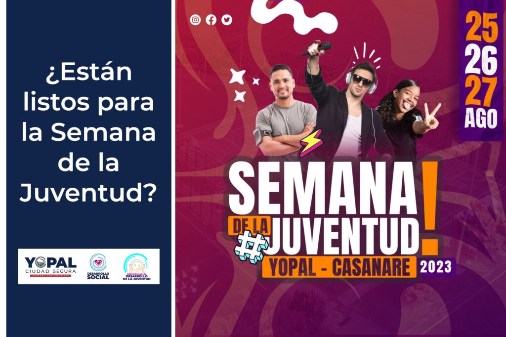 Entre cultura, deporte, medio ambiente y música se vivirá la Semana de la Juventud en Yopal. Este evento —que se realizará desde el 25 y hasta el 27 de agosto— es liderado la Secretaría de Desarrollo Social de la Alcaldía Municipal y busca integrar a los jóvenes incentivándolos a la participación y a la transformación del Municipio.