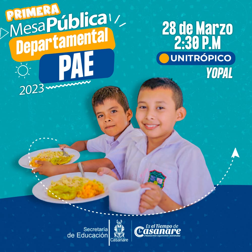 Este espacio de diálogo con rectores, coordinadores, docentes, padres de familia, representantes de estudiantes y manipuladoras de alimentos, operador, interventoría, autoridades municipales, además de entes de control, se realizará el 28 de marzo del 2023 a partir de las 2:30 p.m. en el auditorio de Unitrópico en Yopal.
