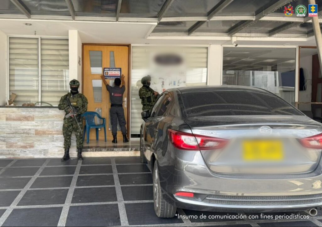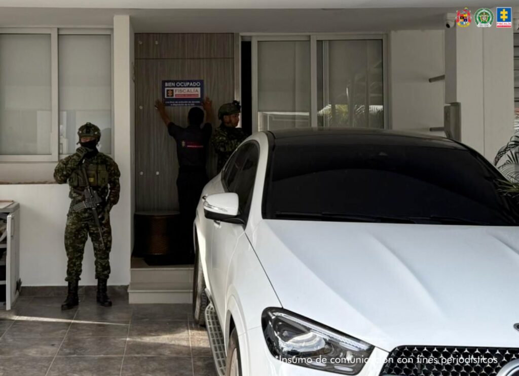 De manera simultánea, fiscales de la Dirección Especializada de Extinción del Derecho de Dominio impusieron medidas cautelares de suspensión del poder dispositivo, embargo y secuestro sobre 33 bienes urbanos y 10 rurales, 4 sociedades, 22 vehículos y 23 establecimientos de comercio, avaluados preliminarmente en 37.000 millones de pesos. Las diligencias de ocupación y materialización de las medidas se realizaron en Cundinamarca,