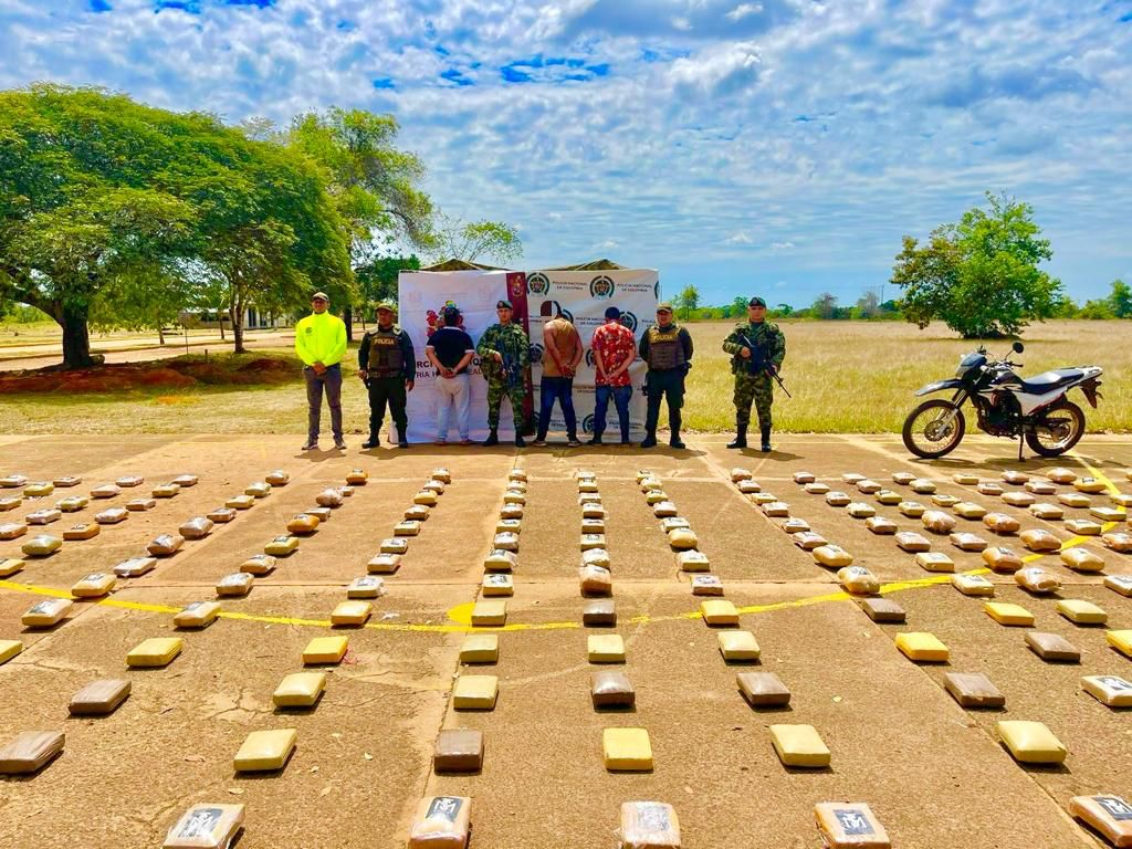 El Ejército Nacional, de manera conjunta con Armada de Colombia, Fuerza Aeroespacial Colombiana, coordinada con Policía Nacional y de manera interinstitucional con la Fiscalía General de la Nación, realizan la incautación de 1516 kilogramos de marihuana y la captura de tres sujetos que la transportaban.