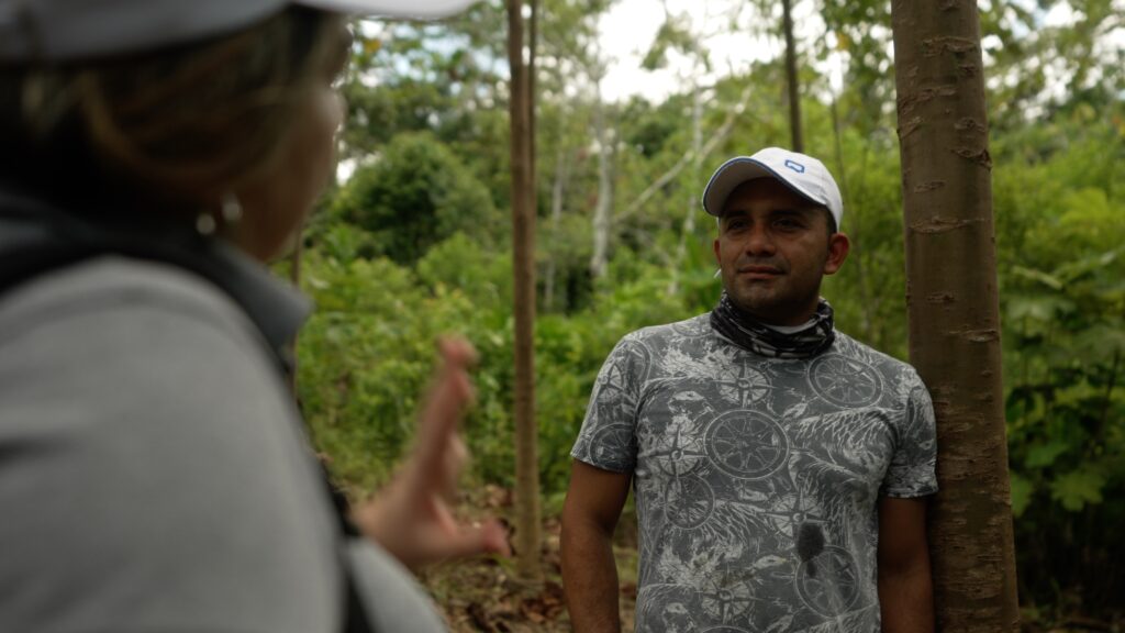 “Aquí trabajamos el balso tipo exportación, que tiene muchos usos: plataformas de aviones, tablas de surf, edificaciones, telas, entre otros”, explica Yovani Acosta, cultivador de balso y beneficiario de un crédito verde.