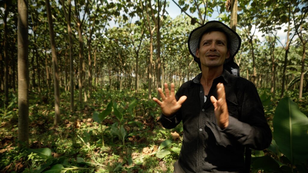 Maximino Morales, del corregimiento La Carmelita, ubicado en Puerto Asís, fue el primer productor que se le otorgó el crédito para el cultivo de balso en la región y hoy es beneficiado por el incentivo a la conservación de los créditos verdes del programa REM Visión Amazonía y Banco Agrario. Él es una de las mejores muestras de lo favorable que resulta tanto para él como el territorio estas alianzas.