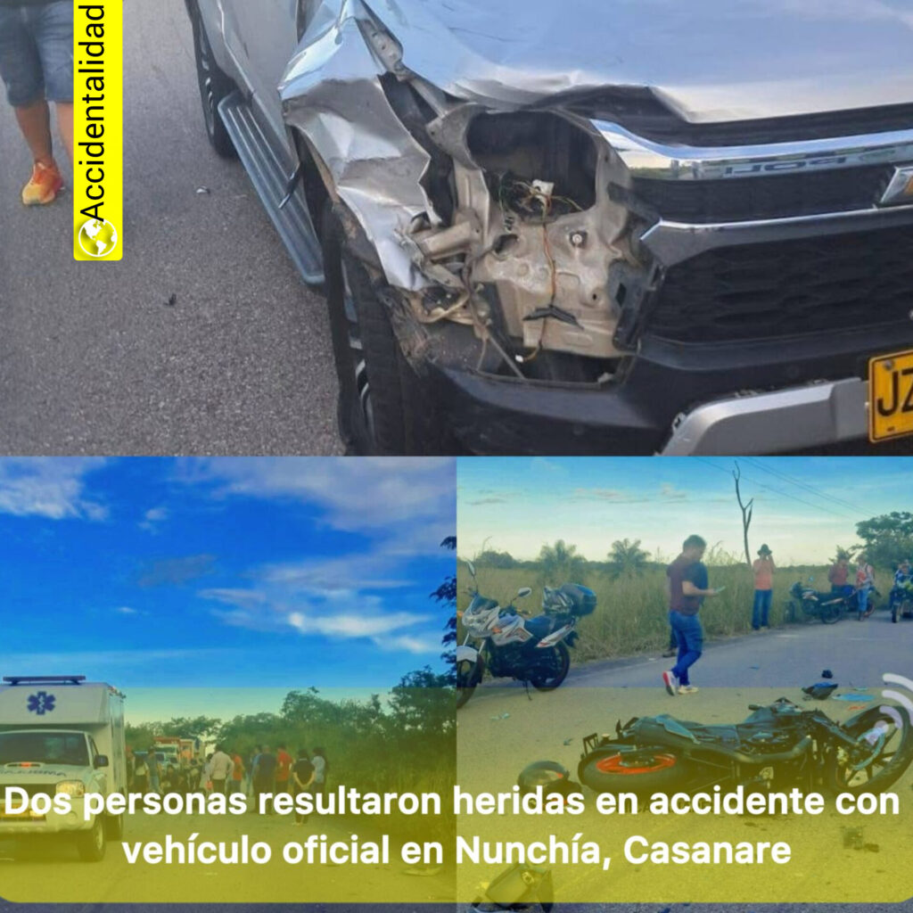 Una colisión en la tarde del pasado sábado, en jurisdicción del municipio de Nunchía, dejó a dos personas heridas tras un choque entre la motocicleta en la que se movilizaban y una camioneta oficial.