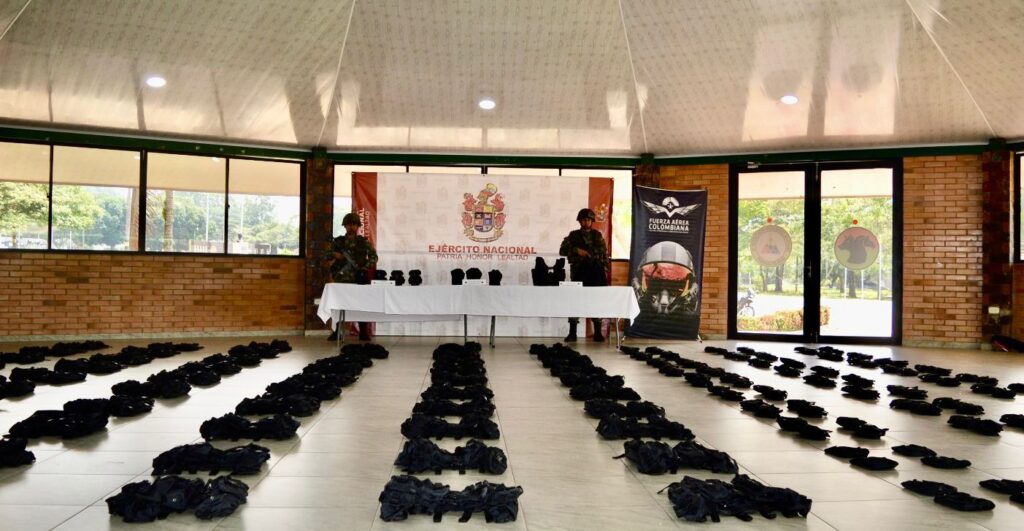 Así mismo, el Ejército Nacional incautó una encomienda que aparentemente había sido enviada desde Bogotá hacia el Municipio de Támara – Casanare, para la Subestructura 28 del Grupo Armado Residual (GAO-r), por medio de una empresa de servicios de envíos nacionales. Los paquetes contenían 60 chalecos multipropósito, 200 cartucheras y 30 forros para cantimplora.