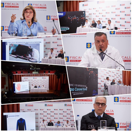 La Vicefiscal General de la Nación, Martha Janeth Mancera; en compañía del director del CTI, Alberto Acevedo Quintero; y de expertos forenses y físicos, presentó los resultados del informe de necropsia y demás actuaciones realizadas para establecer la causa y la manera en la que ocurrió la muerte del teniente coronel, Óscar Dávila Torres, el pasado 9 de junio, en la localidad de Teusaquillo, en Bogotá.