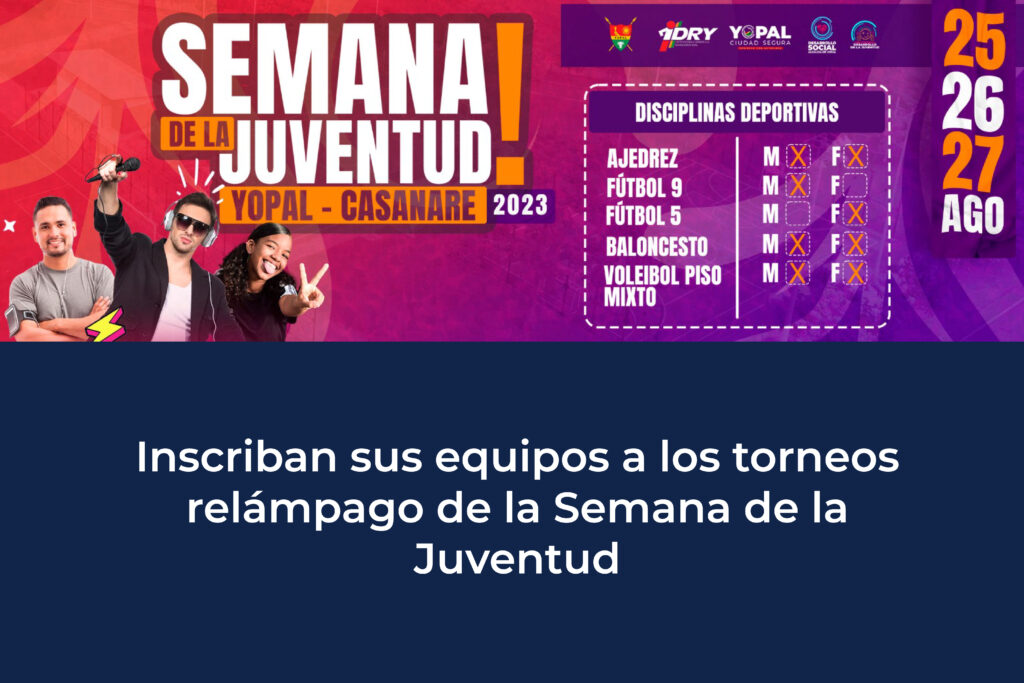 Entre cultura, deporte, medio ambiente y música se vivirá la Semana de la Juventud en Yopal. Este evento —que se realizará desde el 25 y hasta el 27 de agosto— es liderado la Secretaría de Desarrollo Social de la Alcaldía Municipal y busca integrar a los jóvenes incentivándolos a la participación y a la transformación del Municipio.