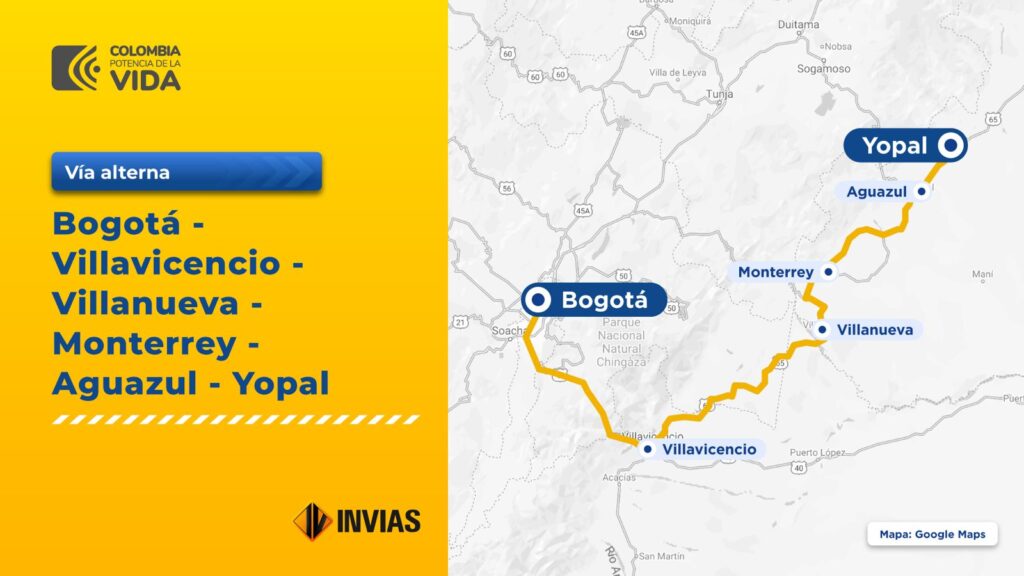 Los usuarios de la vía pueden tomar rutas alternas como: Bogotá-VillavicencioMonterrey-Yopal, para vehículos con peso inferior a 52 toneladas; la vía Tunja – El Sisga – Guateque – Monterrey – Aguazul -Yopal, para vehículos con peso inferior a